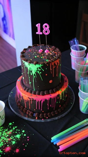 A neon glow cake looks incredible at a party with black lights and LED decor. Bright colors scream “party mode” and feel perfect for turning 18.