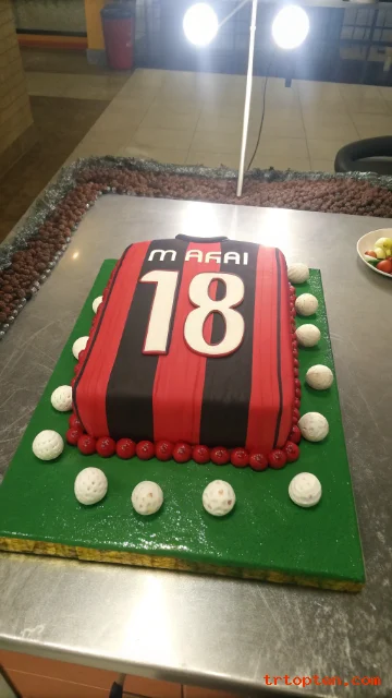 Shape the cake like a jersey or keep it rectangular with a jersey design on top. Use the real team colors, logo, and the number 18 as the shirt number.