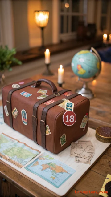 A suitcase cake works for a traveler or someone excited for gap years and new adventures. The theme fits the idea of stepping into adult life.
