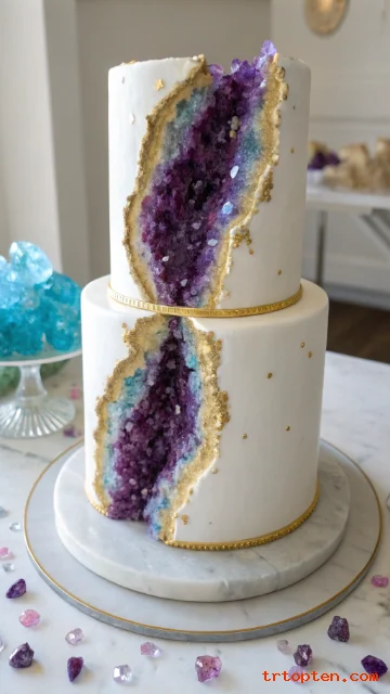A geode crystal cake looks like a piece of edible art and feels very on trend. Sugar crystals give it an expensive, jewel-like look.