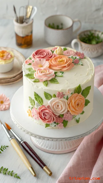 A palette knife painted cake looks like a canvas turned into dessert. Thick strokes of buttercream create flowers, leaves, or abstract art.
