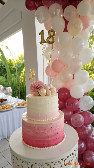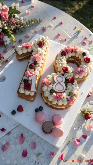 A floral number cake shaped like “1” and “8” makes the age the main star. It feels trendy and very easy to personalize with colors and flowers.