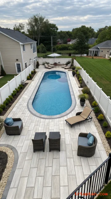 A long oval pool supports exercise better than a small round pool. It fits narrow yards and straight fences. It also looks sleek with a linear patio.