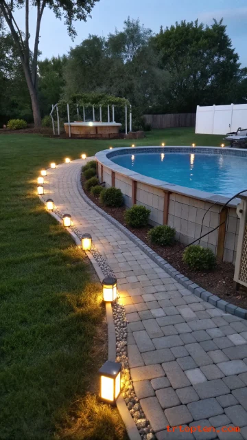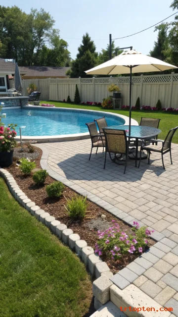 Pavers make a clean, solid zone around an above ground pool. They reduce mud and keep feet cleaner during swim days. They also help you place furniture on a stable surface.