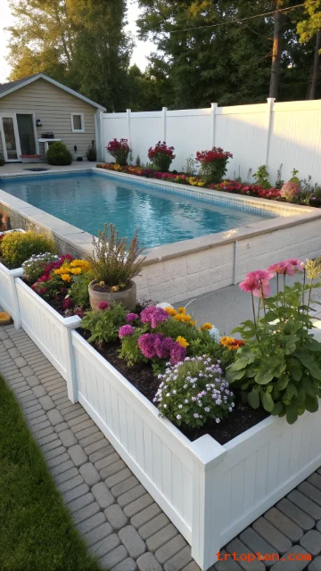 Raised beds add structure and color. They can hide hoses and soft edges. They also help your pool zone feel like a room.