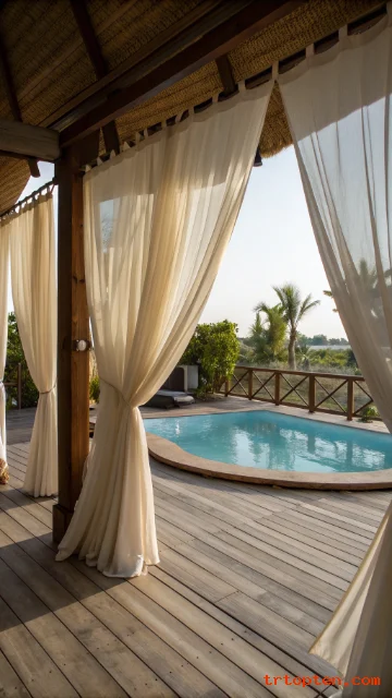 Use outdoor fabric that resists mold. Keep curtains tied back when kids run around. Choose a neutral color for a timeless look.