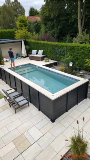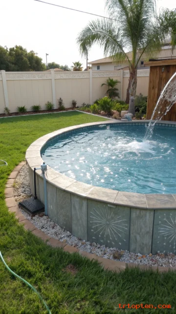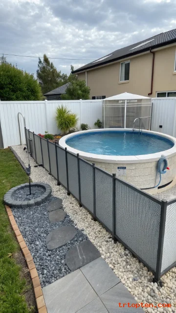 Use concrete blocks or stone for a durable finish. Keep the wall far enough from the pool to allow access for cleaning. Add capstones for a smooth edge.