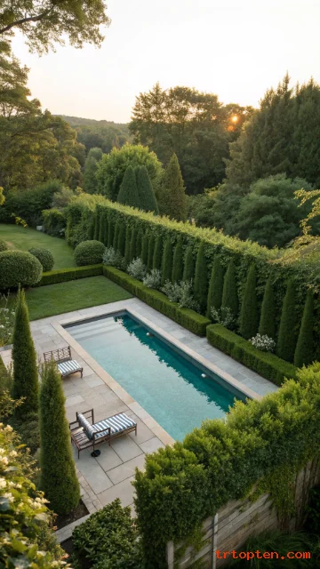 Privacy makes swimming feel more relaxed. Tall hedges block neighbors and soften hard lines. They also reduce wind in some yards.