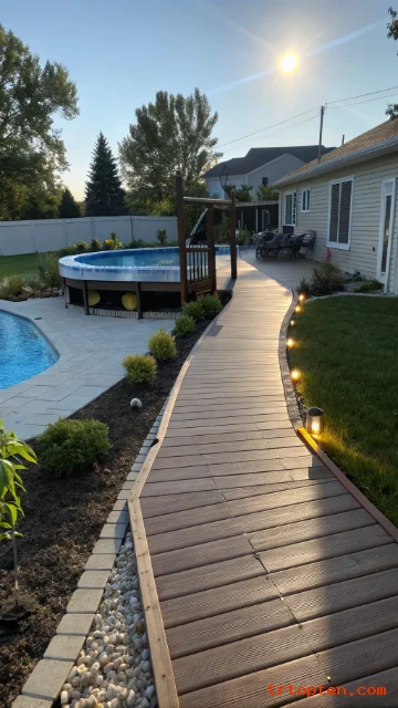 Match walkway materials with the main deck for a consistent look. Add solar path lights to guide night movement. Use a gentle slope or small steps to handle uneven ground.