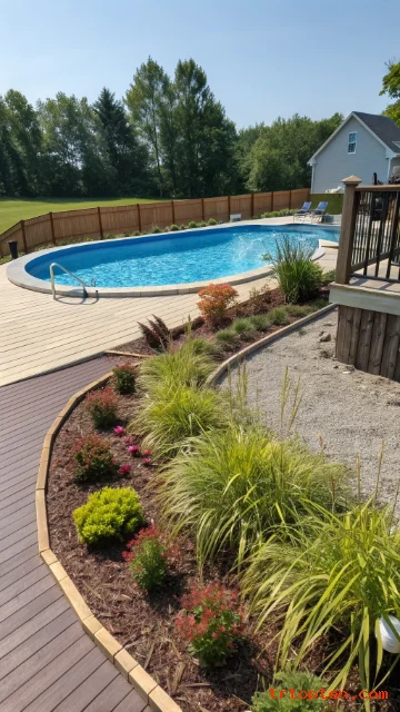 A landscaping border makes the deck blend into the yard and hides harsh edges. Plants soften the view and help the pool area feel intentional. This is one of the best upgrades for photos and resale appeal.