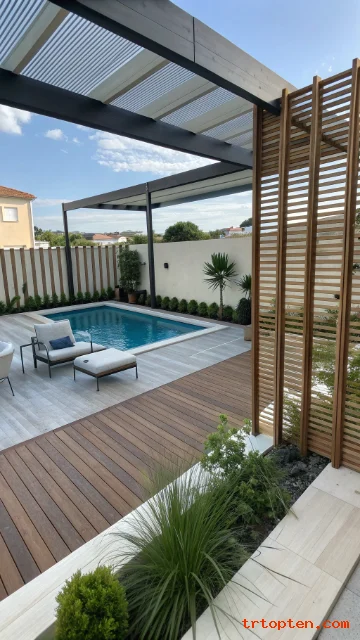 Privacy screens help you relax without feeling exposed to neighbors. They also block wind and create a calmer pool area. You can use wood slats, metal panels, or outdoor fabric.