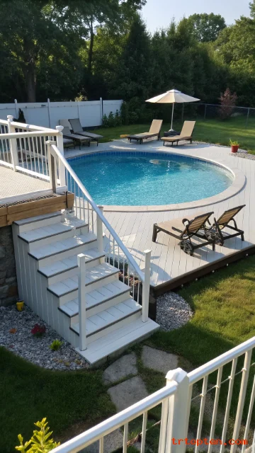 A partial deck gives you a solid entry and lounge area without building around the whole pool. This option saves money and still looks intentional and polished. It works well in small yards and tight spaces.
