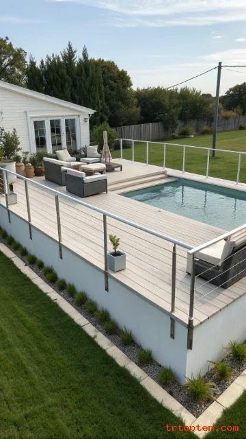 Cable or glass railings look sleek and keep sightlines open. You can watch swimmers easily, which helps with safety. This style pairs well with composite decking and modern landscaping.