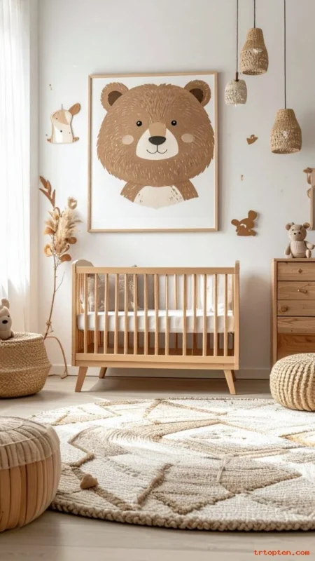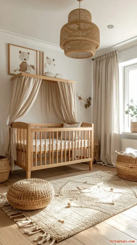 This style feels calm and not overly themed. It also blends well with other decor as the baby grows. The room stays warm and timeless.
