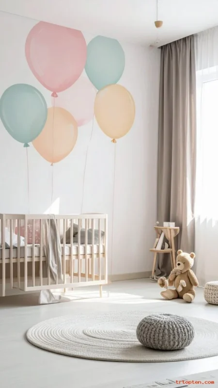 Pair it with one small illustration decal like a balloon or a honey pot. This gives meaning without filling every wall. It also photographs beautifully for memory pictures.