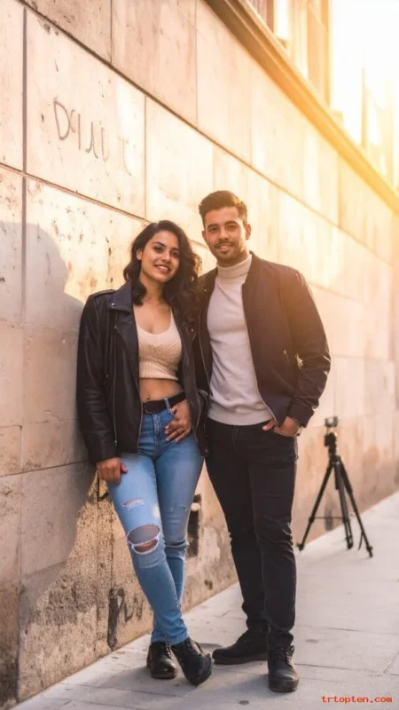 Choose a neighborhood with good light and interesting walls. Set a timer or bring a small tripod for a few shots together. Mix posed photos with candid walking photos.