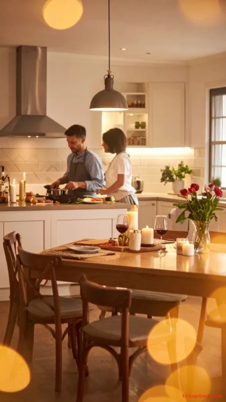 Split tasks so no one feels rushed or stuck washing dishes alone. Pause for a short toast and share one thing you admire about your partner. Finish with dessert on the couch and a favorite movie.