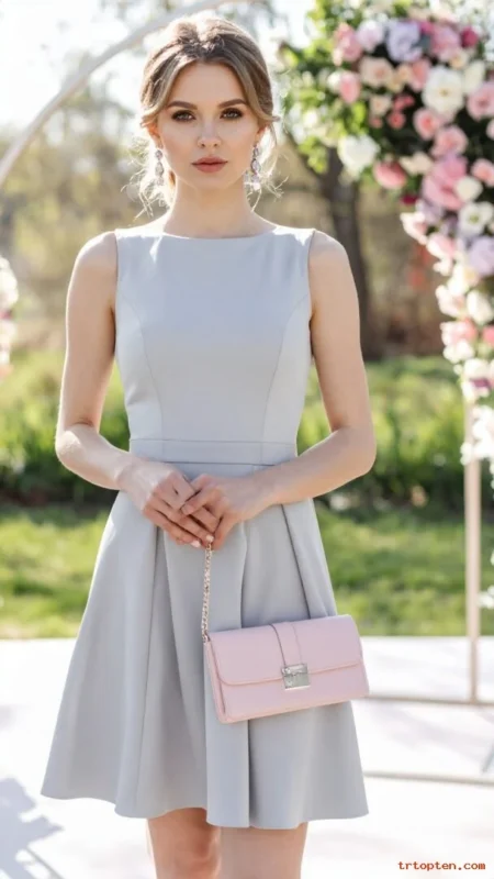 This dress suits modern venues and semi-formal events. Gray also looks good in photos with floral décor. Keep the fabric smooth for a polished result.