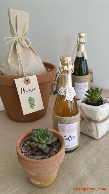 Themed favors like mini Prosecco bottles or coffee are great. A small plant, like a succulent, is a lasting keepsake. A homemade treat wrapped nicely is always appreciated.