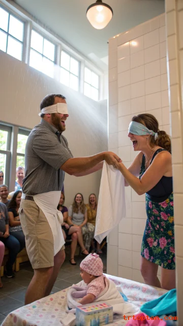 The race continues until every team member has completed the task. The first team to finish wins a prize. Watching guests fumble with the diaper while blindfolded is very funny. It breaks the ice and gets everyone laughing together.