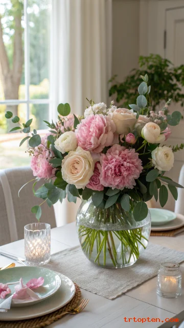 Beyond the main table, use smaller bud vases to sprinkle color around the room. You can place a single stem at each place setting for a special touch. Flowers like roses, peonies, or hydrangeas feel romantic and celebratory. Their natural beauty enhances any decor style.