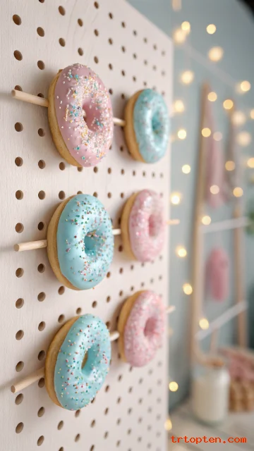 A donut display adds instant whimsy and sweetness to your decor. Source an assortment of beautiful donuts from a favorite local shop. You can hang them on a pegboard or arrange them on tiered stands for visual impact. This turns simple pastries into a striking decorative element.