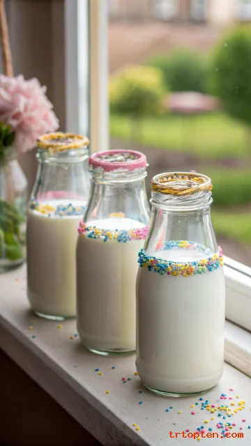 Serve drinks like iced coffee, chocolate milk, or cold brew in these special glasses. The sprinkle rim is a delightful surprise that fits a baby “sprinkle” theme perfectly. They are incredibly easy to make but look professionally decorated. Guests will love this charming detail.