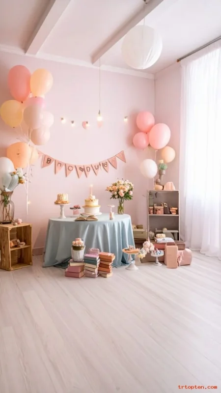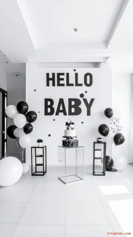 A neutral minimal theme is easy because it uses simple colors and clean decor. You can add one strong sign and a balloon cluster to finish the look.