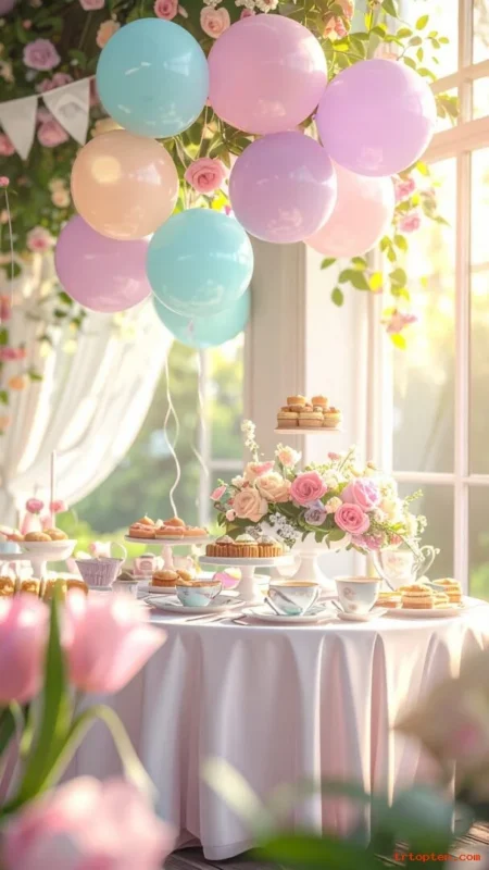 Use floral patterns, pastel colors, and vintage tea cups. Add lace runners and fresh flowers for a delicate look.