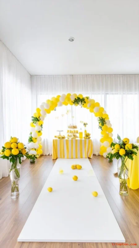 Serve lemon bars, citrus mocktails, and light snacks that match the theme. Use name cards shaped like lemons to tie the table together.
