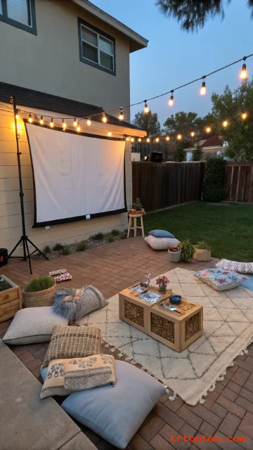 An outdoor movie corner feels fun and easy. It can work on a small patio too.