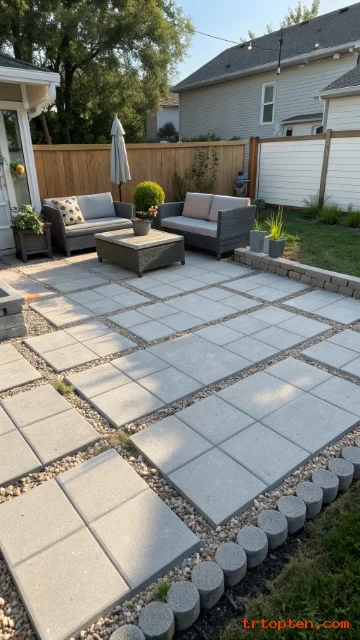 A grid paver layout looks tidy and modern. It also makes planning furniture placement simple.