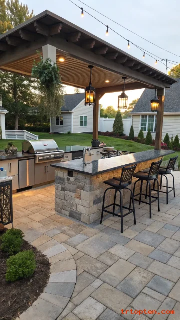 Use weather-resistant cabinets and stainless hardware. Add task lighting so food prep feels easy at night.