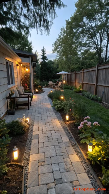 Use matching stone or pavers for a consistent look. Add low path lighting for safety and mood.