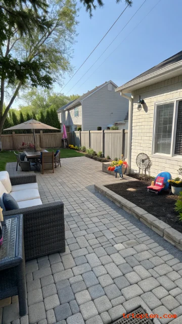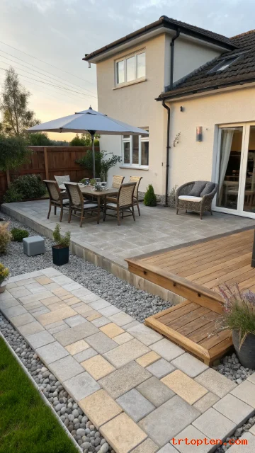 Combine pavers with a small deck section or gravel border. Keep colors in the same tone family.