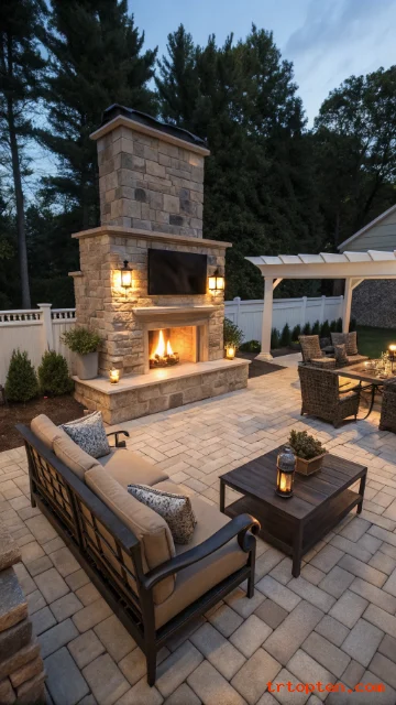 An outdoor fireplace creates a strong focal point. It also makes the patio feel upscale.