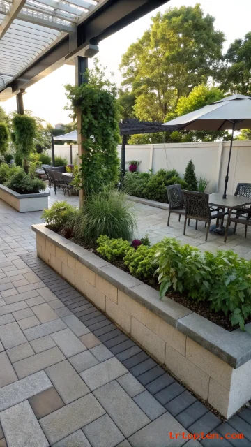 Build raised planters at the patio edges. Fill them with herbs, grasses, and low shrubs.