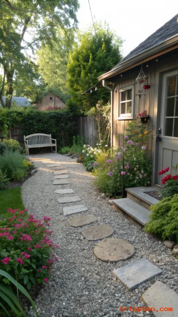 Use larger stepping stones to create stable paths. Add a bench or small swing for character.