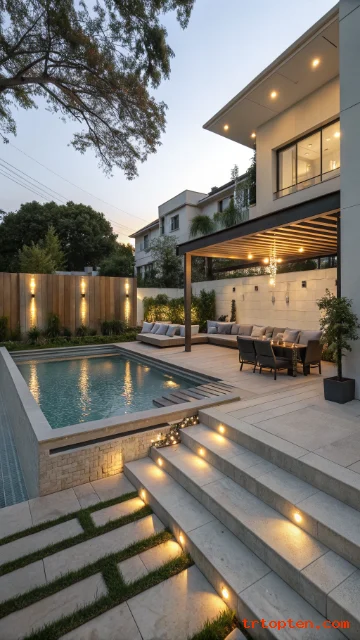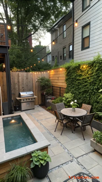 A plunge pool works well in tight yards. It gives you cooling comfort without taking over the whole space. A compact patio can still fit a bistro table and grill.