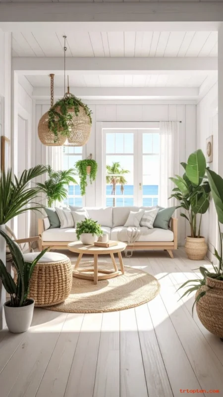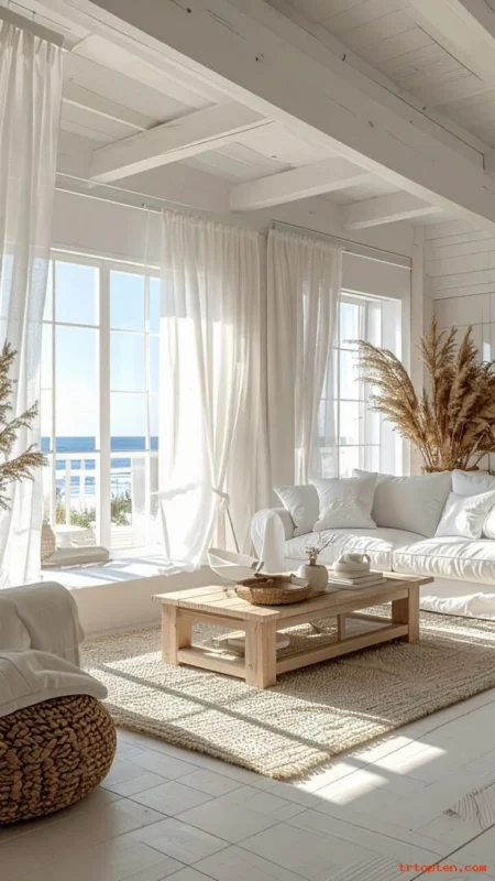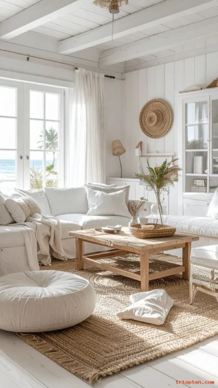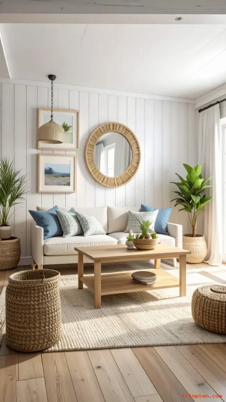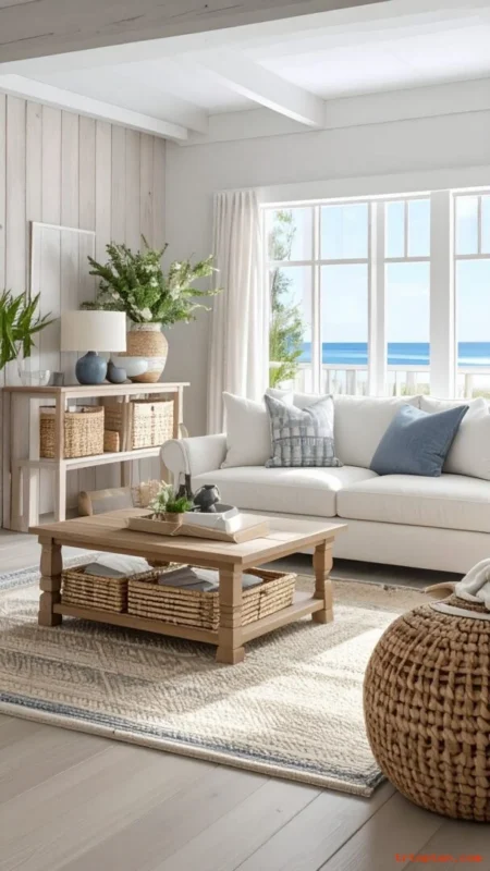 How do I make my home look beachy without using shells everywhere? Use natural textures like linen, jute, and light wood. Add one or two coastal accents per room instead of many.