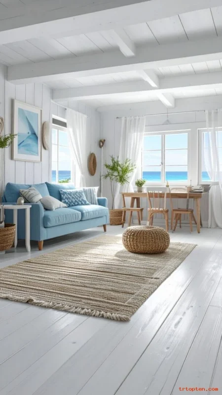 Choose soft textures that feel good under bare feet. Beach cottages feel best when they feel comfortable. Keep floor decor simple so the space looks open. Let natural light be the main feature.