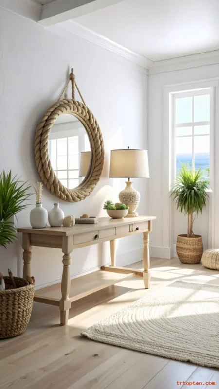 Keep the rope detail small so it feels tasteful. Too much rope can look like a themed restaurant. Pair it with clean white walls and simple furniture. The contrast makes the rope detail look fresh and modern.