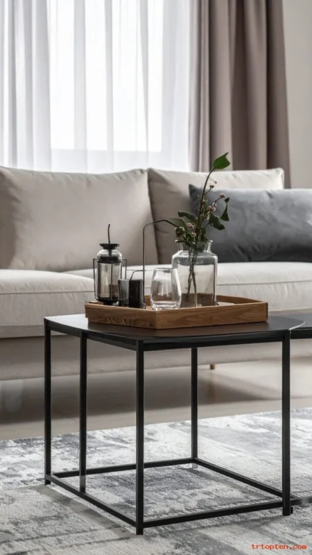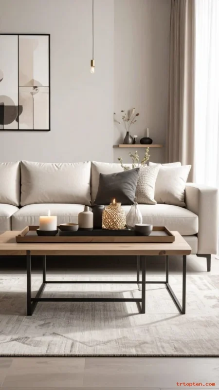 Choose a tray that matches your style, like wood, metal, or rattan. Keep items inside the tray so the surface stays tidy. Add one small vase or candle to soften the setup. Leave space for drinks or a quick drop zone.