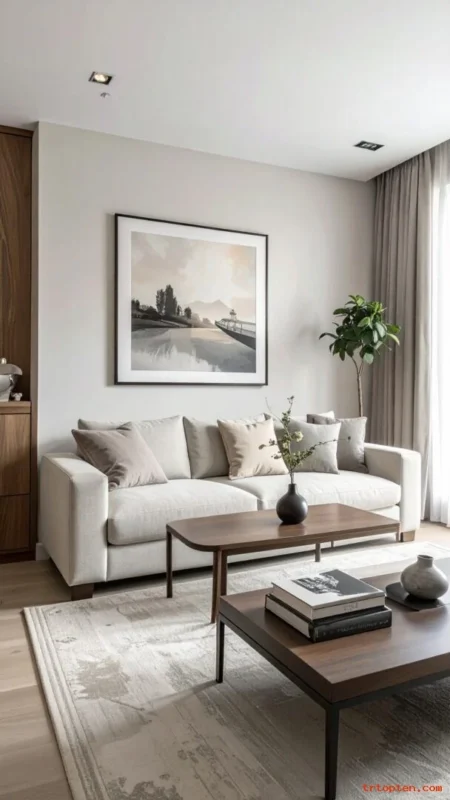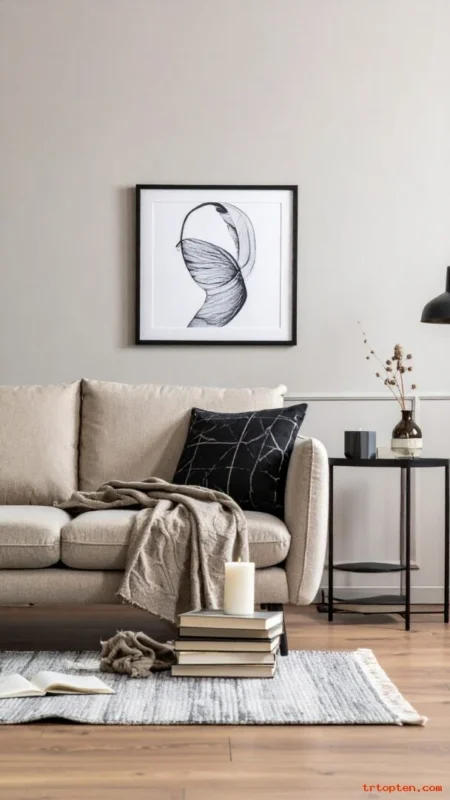 Choose a print that repeats colors from your rug or pillows. Use two book stacks to vary height. Add one small vase or candle for softness. Keep the rest of the surface clear for daily use.