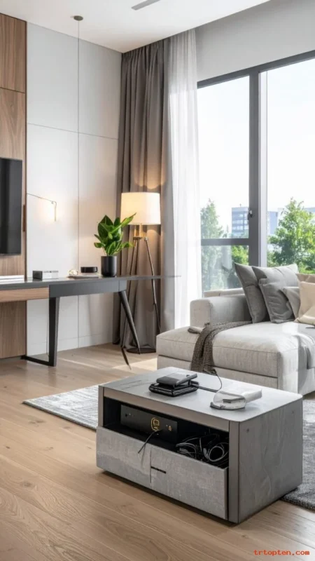Use a tray or box to hide chargers and cords. Add a lamp nearby so the setup looks intentional. Choose cord clips or a cable sleeve for a clean finish. Keep one open spot for daily drop-offs.