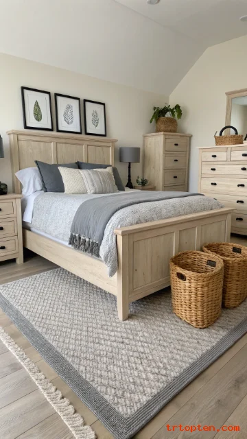 Use woven baskets for storage to keep the room tidy. Add a beige jute rug to warm up the space. The room will feel fresh and easy.
