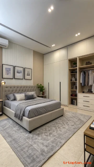 Choose simple furniture with straight lines and smooth finishes. Use beige walls and grey bedding for a clean base. This look suits modern apartments and small rooms.