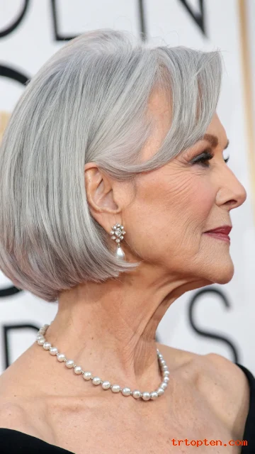 The grey bob is one of the most polished looks for women over 70. It is loved for its inherently sleek and timeless nature. An added bonus is its very low-maintenance appeal.