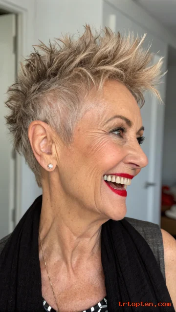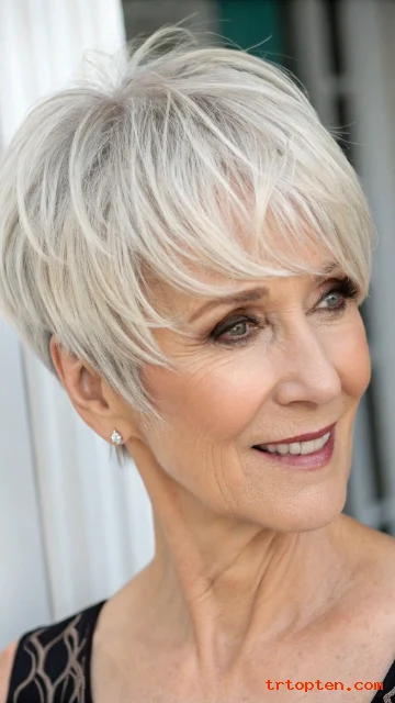As hair structure changes with age, shorter cuts often look healthier and fuller. A pixie is wonderfully low-maintenance. It can be both sophisticated and edgy, offering a fresh, modern silhouette.
