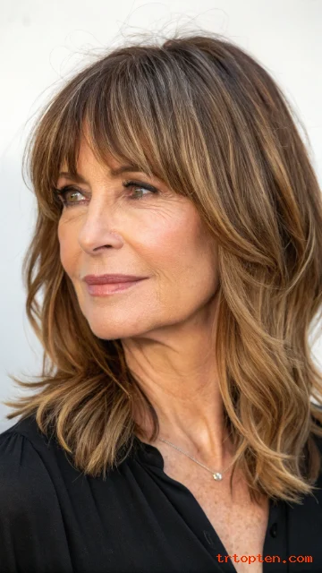 A layered cut paired with bangs offers a sophisticated and textured look. This combination provides excellent volume and movement. It frames the face beautifully for a harmonious effect.